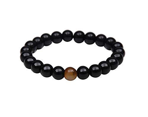 Other - سوار اسود لامع مع حببة من حجر عين النمر - مقاس 20 سم، للجنسين