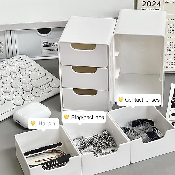 Generic - منظم صغير وأنيق من ثلاث طبقات، وحدة الأدراج هذه مثالية لمستحضرات التجميل والمجوهرات وأدوات الكتابة، مما يوفر مساحة تخزين عملية وأنيقة لمساحتك. (قطعة واحدة)