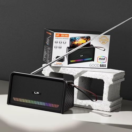 Generic - مكبر صوت لاسلكي انيق مع بلوتوث وبطاقة تي اف ومنفذ USB وراديو اف ام يتميز باضاءة RGB مميزة وبطارية قابلة لاعادة الشحن 1800mAh وجودة صوت قوية | LP-V86