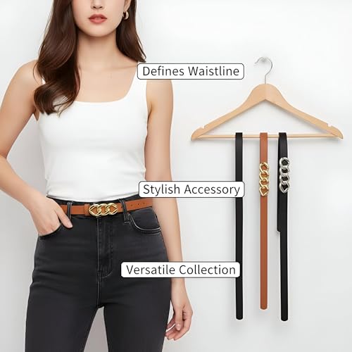 Generic - حزام حريمي رفيع قابل للتعديل بتصميم جلد أنيق ومشبك معدني، مناسب للفساتين كاكسسوار خصر أنيق للمظهر الرسمي واليومي
