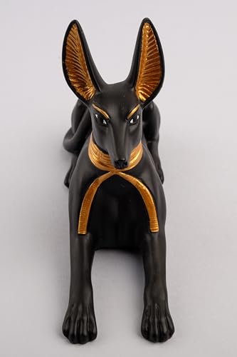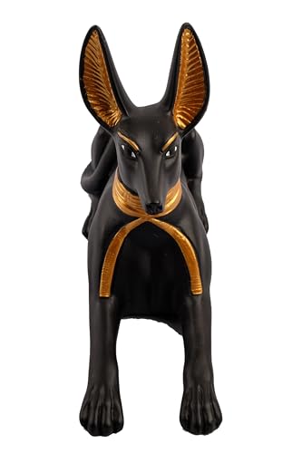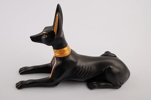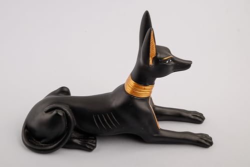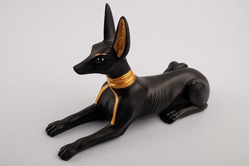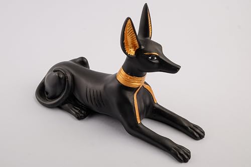 generic - تمثال مصري قديم فريد من نوعه لأنوبيس إله الموت والتحنيط والحياة الأخرى برأس كلب وجسد إنسان محنط، حجر مطلي باللون الأسود والذهبي صنع في مصر.