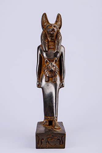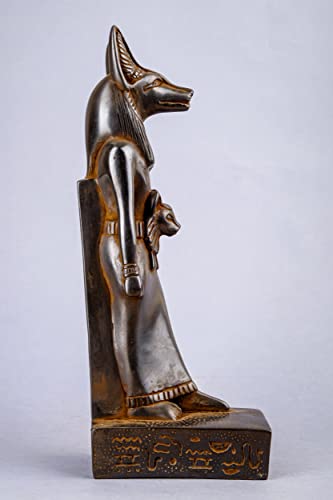 Generic - تمثال مصري قديم فريد من نوعه لأنوبيس ابن آكال إله الحياة الآخرة والتحنيط برأس سخمت من الأمام مصنوع من حجر أسود ثقيل وفريد في مصر