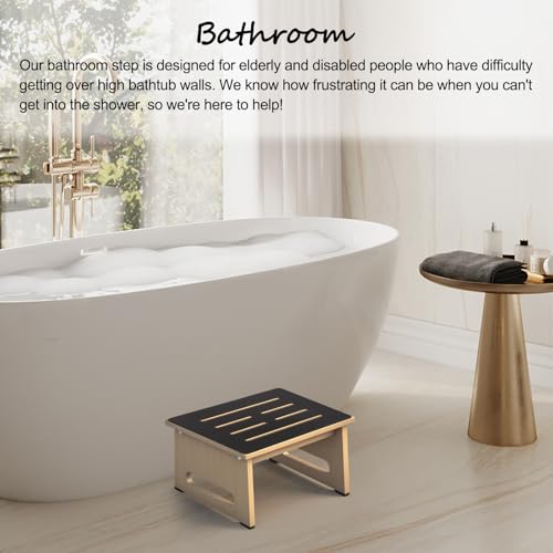 RayLove - مقعد خشبي 8.7 انش للبالغين وكبار السن مع وسادة مطاطية غير قابلة للانزلاق، للاستخدام الداخلي والخارجي، مساعد خشبي محمول للحمام والمطبخ وطاولة السرير وغيرها (جولانمو)