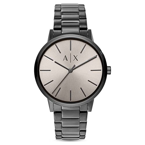 Armani Exchange - ساعة ستانلس ستيل مقاومة للماء دائرية انالوج بعقارب للرجال من ارماني اكسجينج AX2722 - رمادي داكن