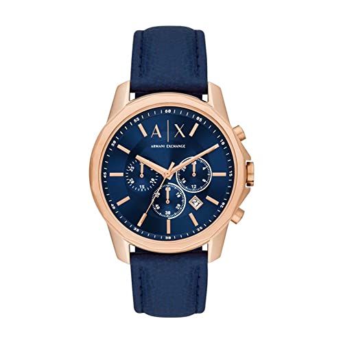 Armani Exchange - ساعة يد انالوج كوارتز بتصميم دائري وسوار جلد للرجال من ارماني اكستشينج AX1723, ذهبي وردي