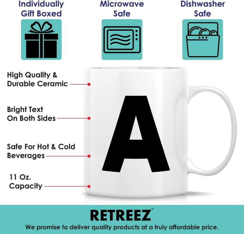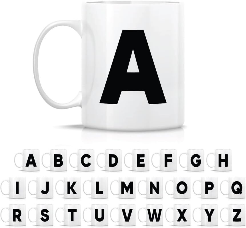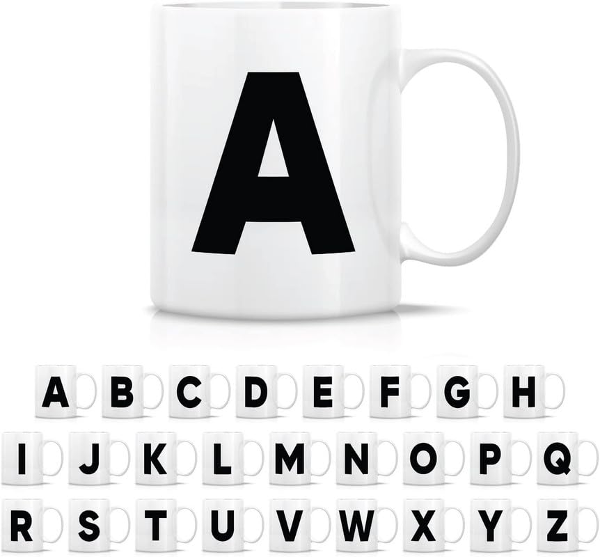 Generic - كوب شاي وقهوة من السيراميك بحروف الابجدية من A-Z - هدية تقدير التخرج وعيد الميلاد لصديقتها وزميلتها في العمل والام والاخت - حرف A