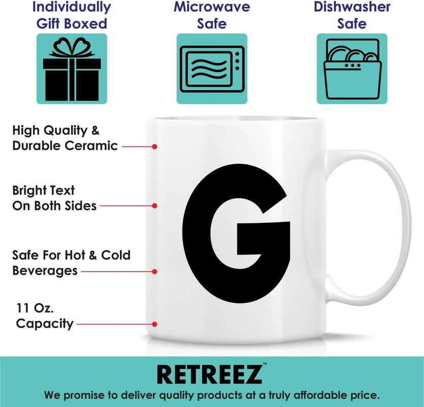 Generic - كوب شاي وقهوة من السيراميك بحروف الابجدية من A-Z - هدية تقدير التخرج وعيد الميلاد لصديقتها وزميلتها في العمل والام والاخت - حرف G