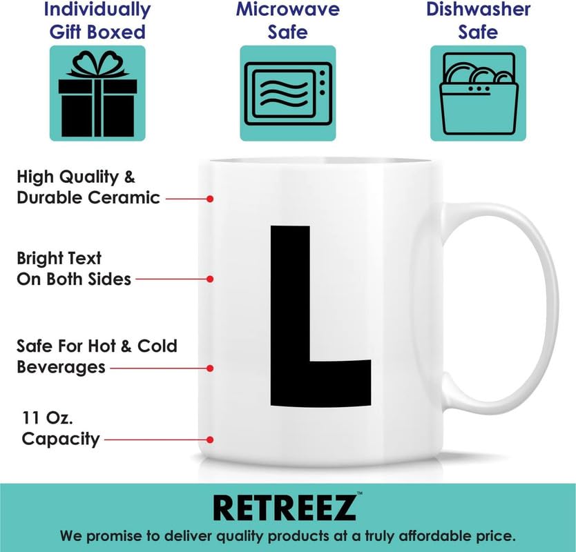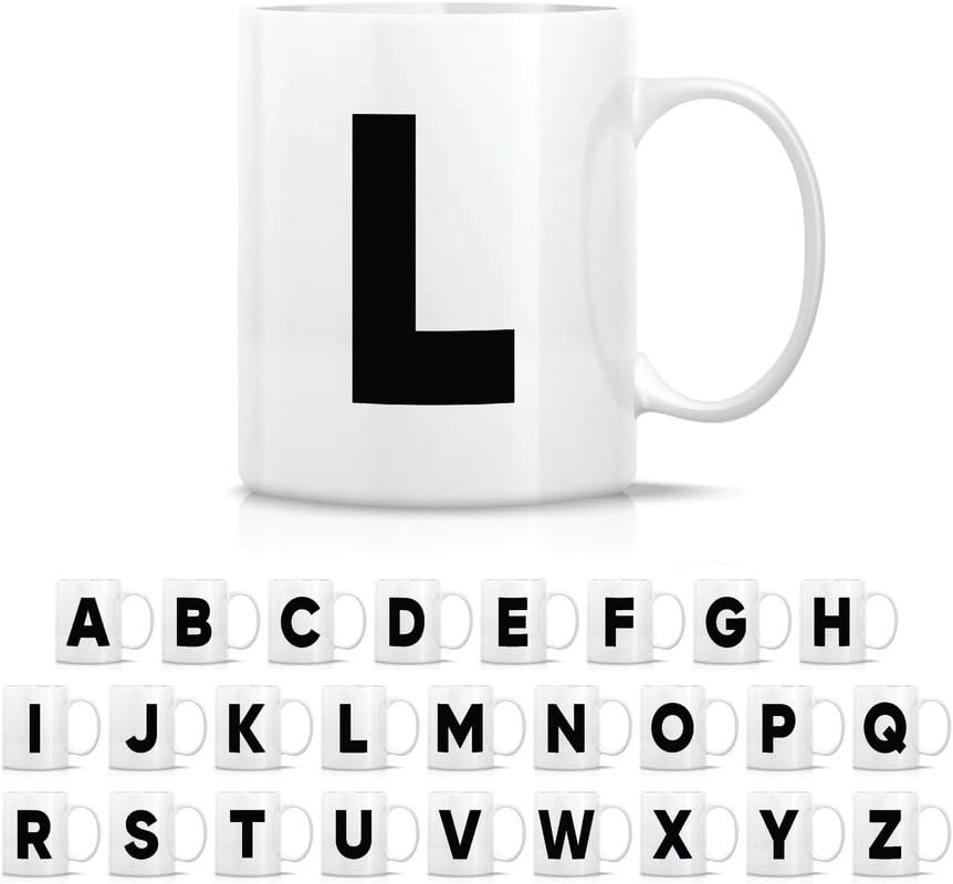 Generic - كوب شاي وقهوة من السيراميك بحروف الابجدية من A-Z - هدية تقدير التخرج وعيد الميلاد لصديقتها وزميلتها في العمل والام والاخت - حرف L