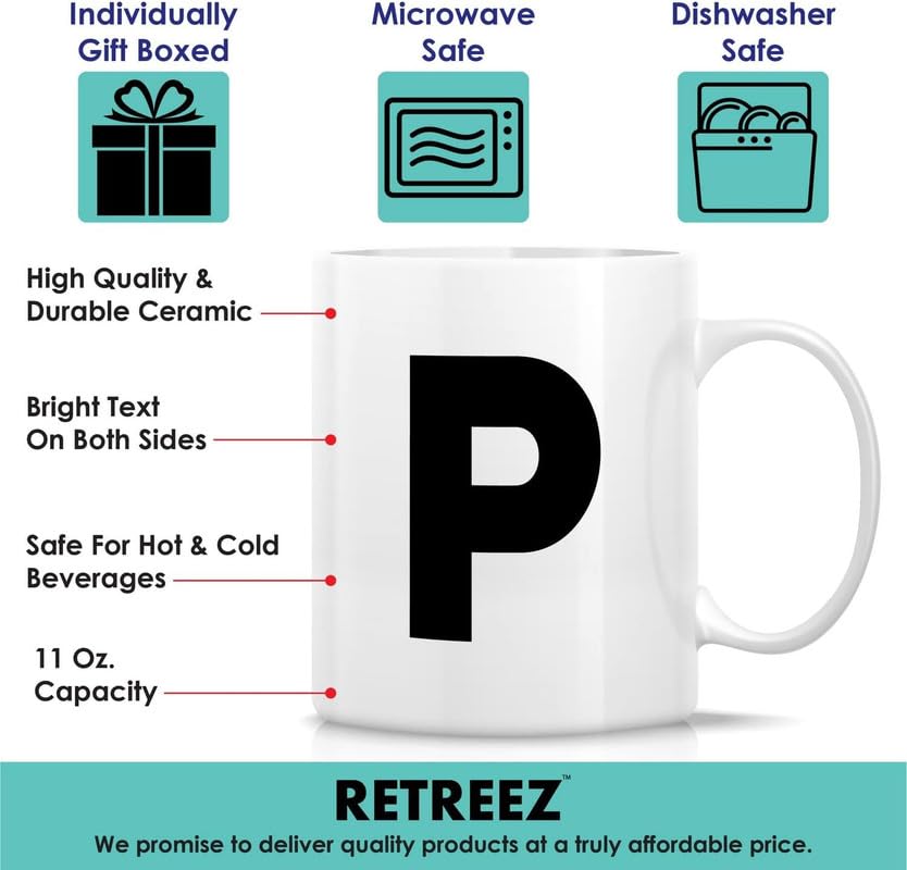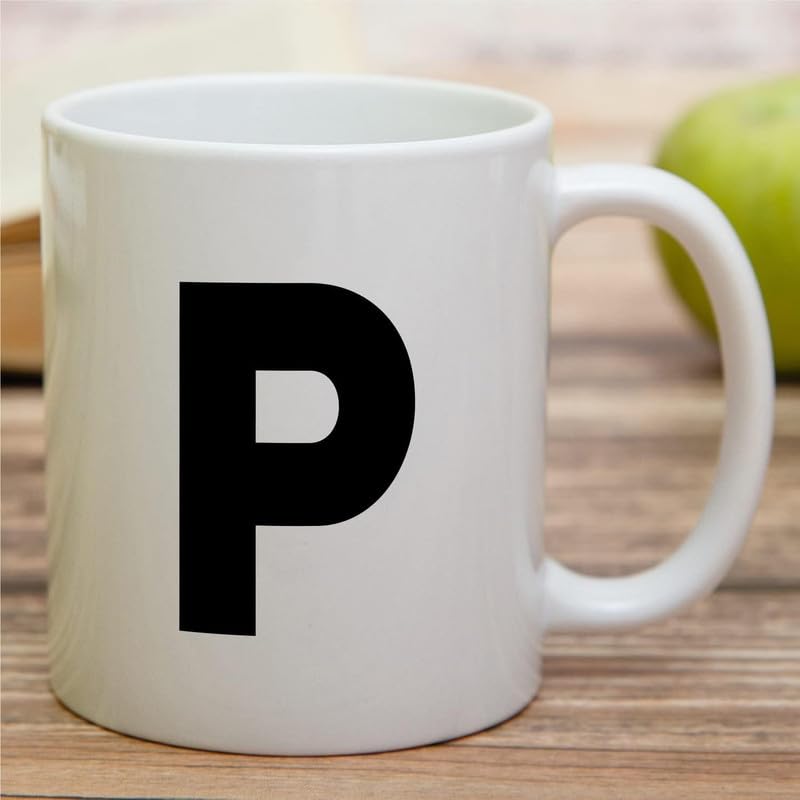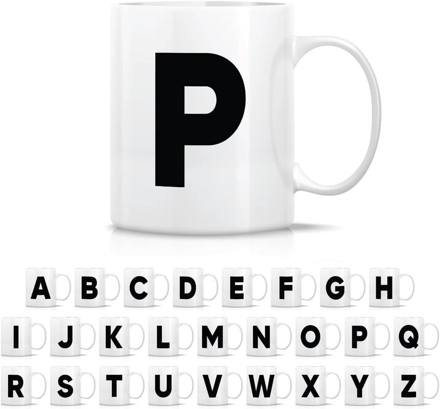 Generic - مج شاي وقهوة من السيراميك مزخرف بالحروف الأبجدية من A-Z بنمط حرف واحد، هدية تقدير للتخرج وعيد الميلاد لصديقتها وزميلتها في العمل والأم والأخت والأب - تصميم حرف P