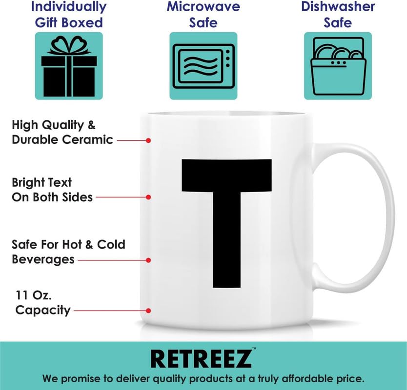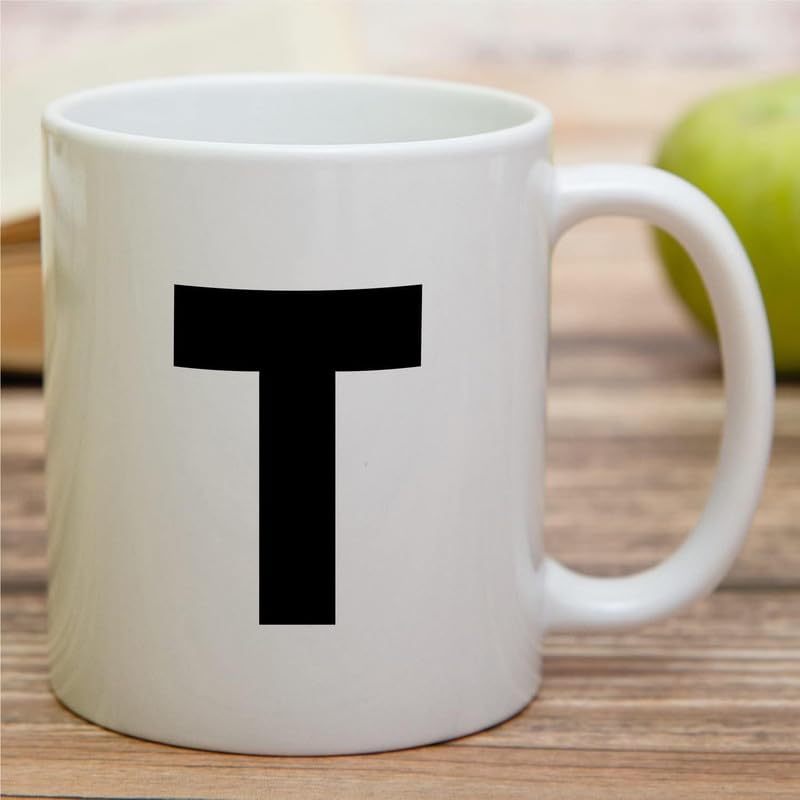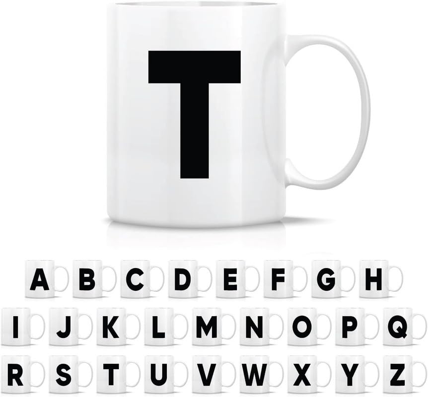 Generic - مج شاي وقهوة من السيراميك مزخرف بالحروف الأبجدية من A-Z بنمط حرف واحد، هدية تقدير للتخرج وعيد الميلاد لصديقتها وزميلتها في العمل والأم والأخت والأب - تصميم حرف T