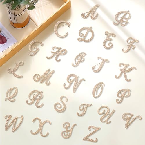 JerryHardice - دبابيس بروش حروف A-Z عدد 26 حرفًا، شارات أبجدية ذهبية بلؤلؤ مقلد، دبوس للقبعة والشنطة والفستان والمعطف والبدلة كإكسسوار، هدايا اسم أنيقة ومخصصة للنساء والرجال