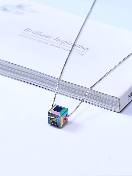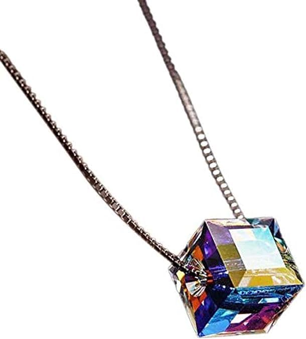 Generic - سلسلة قصيرة كريستال استريان مع حلية متدلية مكعبة الشكل من اورورا مكعب السكر الترقوة للنساء A.Z jewelry