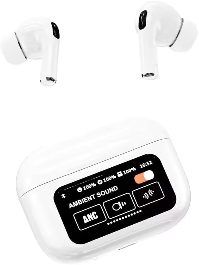 Generic - سماعات أذن ترو لاسلكية A11 PRO متطورة بخاصية إلغاء الضوضاء ANC/ENC، سماعات راس بلوتوث مع علبة شحن ذكية لاسلكية و شاشة تحكم باللمس و ميكروفونات بصوت باس جهوري قوي ، ابيض
