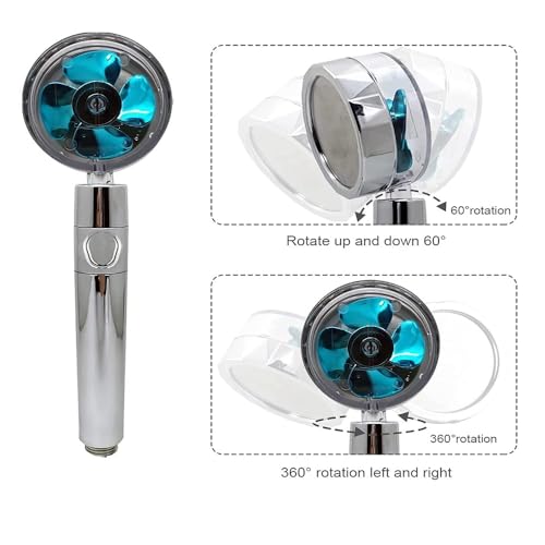 A2K Zone - رأس دش بمروحة تربو ضغط مياه عالي، يتميز بمروحة صغيرة ودوار 360 درجة مع فوهة رش ضغط عالي قابلة للغسل من ايه 2 كيه زون، فضي، قطعة واحدة