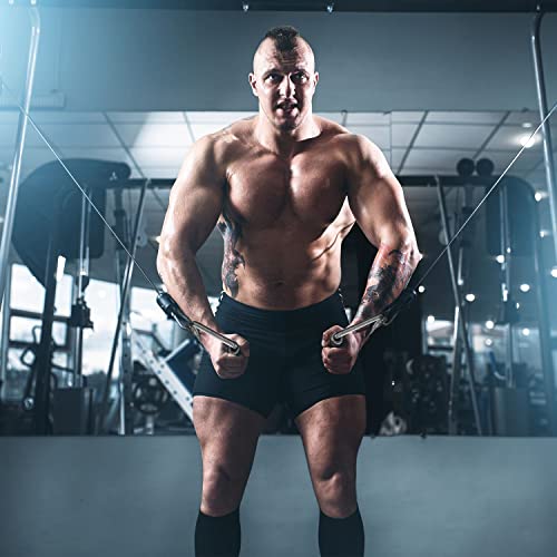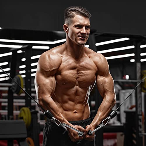 - 💪متعددة الوظائف مع مقبض مطاطي: مثالية لتطوير عضلات ثلاثية الرؤوس والعضلة ذات الرأسين والظهر والكتفين وتقاسم المنافع وتحسين قوة قبضتك. تمنحك المقابض على شكل حرف D قبضة رائعة، وتسمح لك بتحريك المزيد من الوزن، وتساعدك على أداء كل ممثل بشكل جميل وتسمح لك بتمرين ذراعين في وقت واحد