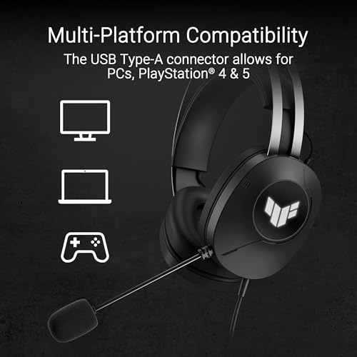 ASUS - سماعة رأس للألعاب A302 TUF H1 من الجيل الثاني مع نظام صوت محيطي افتراضي 7.1 وتحكم فوري