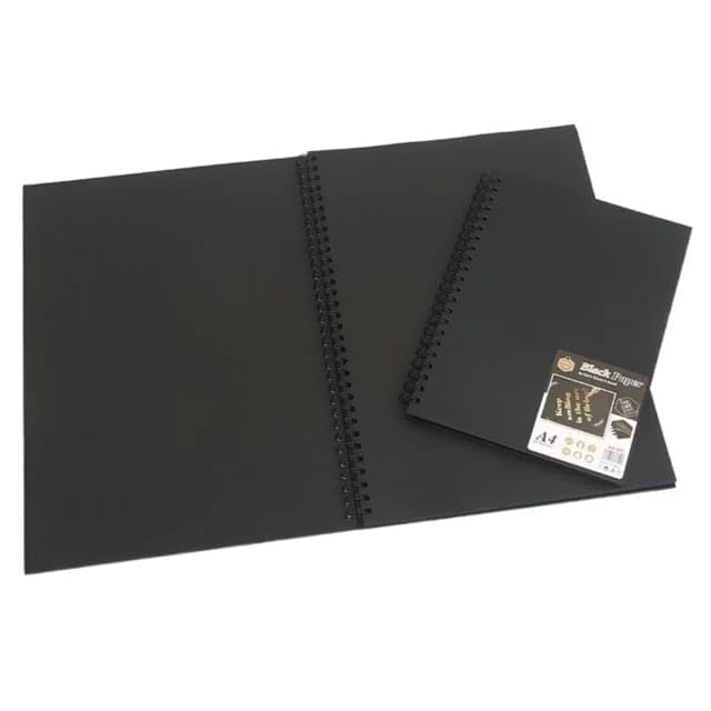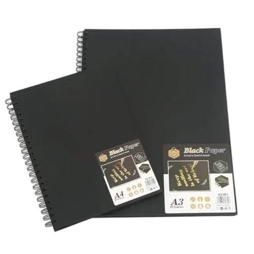- دفتر رسم مقاس A4 باللون الاسود من هاردوفر، لوح سميك 110 غرام لكل متر مربع مقاس A4، لوحة رسم حلزونية، رسومات بورتريه، 60 ورقة 120 صفحة