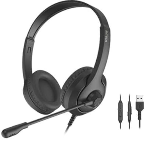 Generic - سماعة راس اف ستايلر بمنفذ USB من ايه 4 تيك، لون رمادي، FH100U، سلكي، فوق الأذن