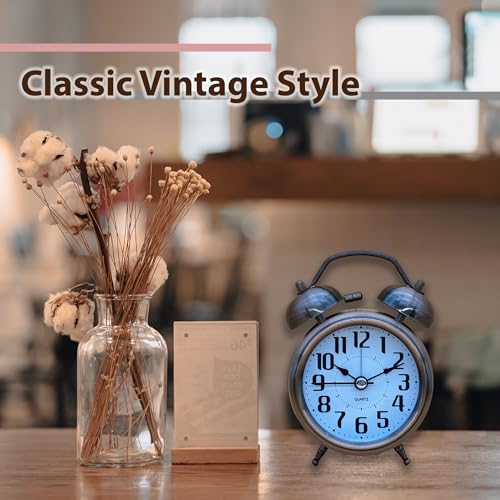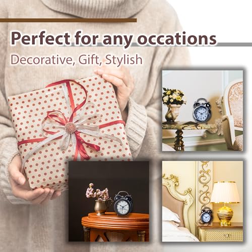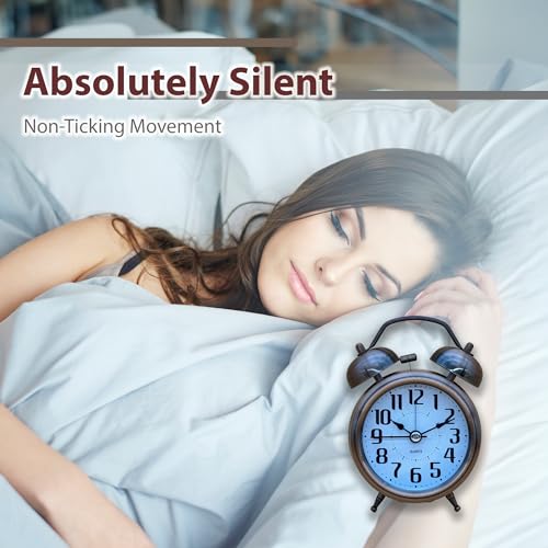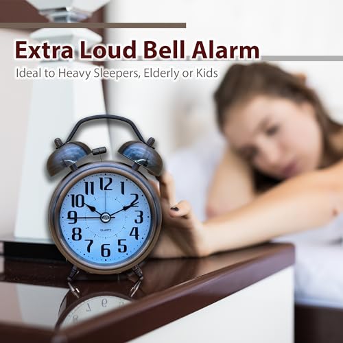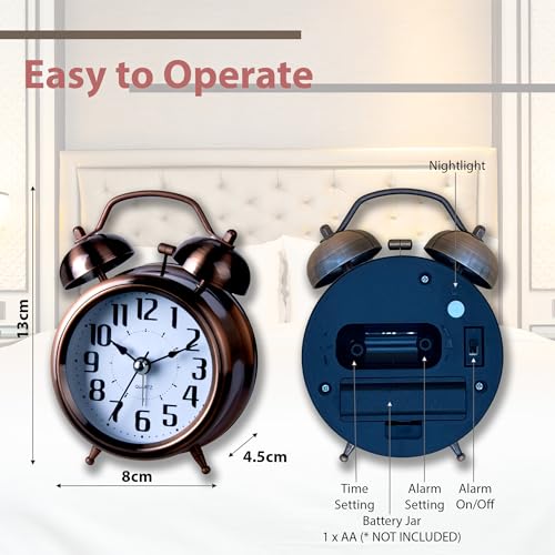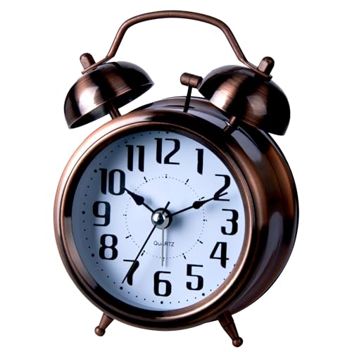 A5 - ساعة منبه A5 مزدوجة الجرس بدون تكتكة بقطر 8 سم، تصميم كلاسيكي عتيق، انالوج، بصوت عال للغاية، مع ضوء ليلي وغفوة، لغرفة النوم والمكتب والسفر وكبار السن والاطفال والبنات (نحاسي)، معدن