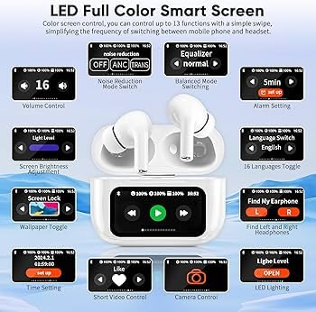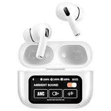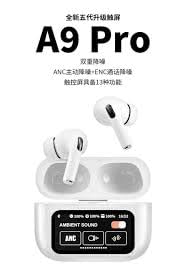 Generic - سماعات أذن ترو لاسلكية A9 NEW 2 متطورة بخاصية إلغاء الضوضاء ANC/ENC، سماعات راس بلوتوث مع علبة شحن ذكية لاسلكية و شاشة تحكم باللمس و ميكروفونات بصوت باس جهوري قوي ، ابيض