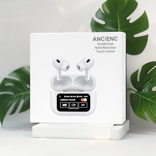 Generic - سماعة راس بلوتوث ايه 9 برو، سماعة ذكية بخاصية الغاء الضوضاء، تحكم في الشاشة، شاشة ملونة متعددة الوظائف، عمر بطارية طويل، ابيض