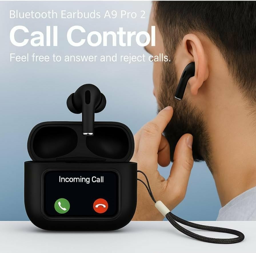 Generic - سماعةA9Pro2 لون اسود بلوتوث ذكية بشاشة لمس وتطبيق مخصص –A9 Pro 2 – تحكم بالموسيقى والمكالمات، GPS، رسائل، كاميرا عن بعد، ألعاب، مساعد صوتي بالذكاء الاصطناعي – تدعم العربية – مع شحن USB-C