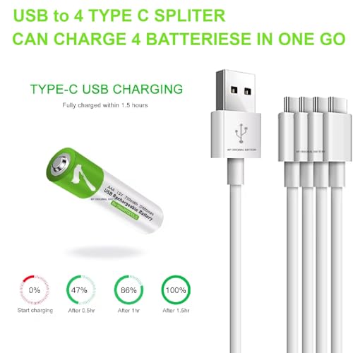 Generic - بطاريات AA 2600mAh + AAA 750mAh قابلة لإعادة الشحن بطارية ليثيوم أيون 1.5 فولت USB AA+AAA مع كابل شحن Type C خرج ثابت 1200 دورة 4 عبوات و4