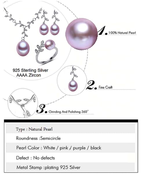 Generic - طقم مجوهرات فاخرة للنساء من من اللؤلؤ الطبيعي النقي معدل نقاء AAAA والفضة الاسترليني عيار 925 مطعم بالكريستال بتصميم أفرع شجر