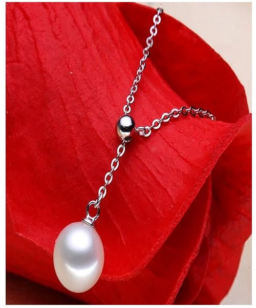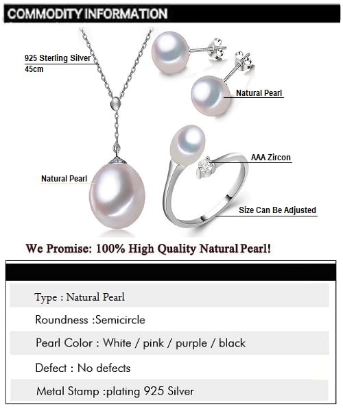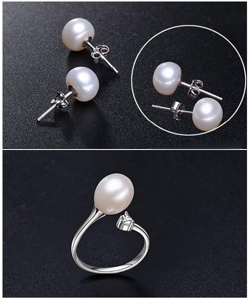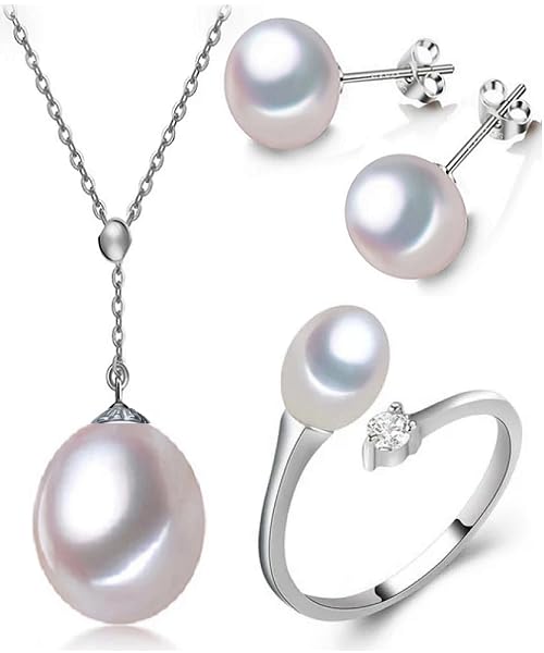 Generic - طقم مجوهرات فاخرة للنساء من اللؤلؤ الطبيعي النقي معدل نقاء AAAA والفضة الاسترليني عيار 925 مطعم بالكريستال أنيق بتصميم قطرة ماء2