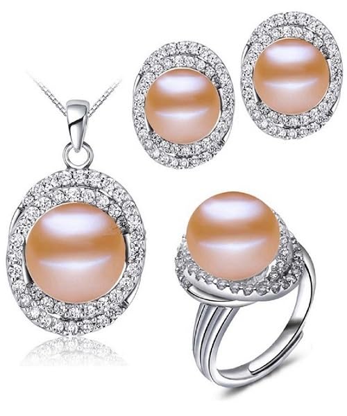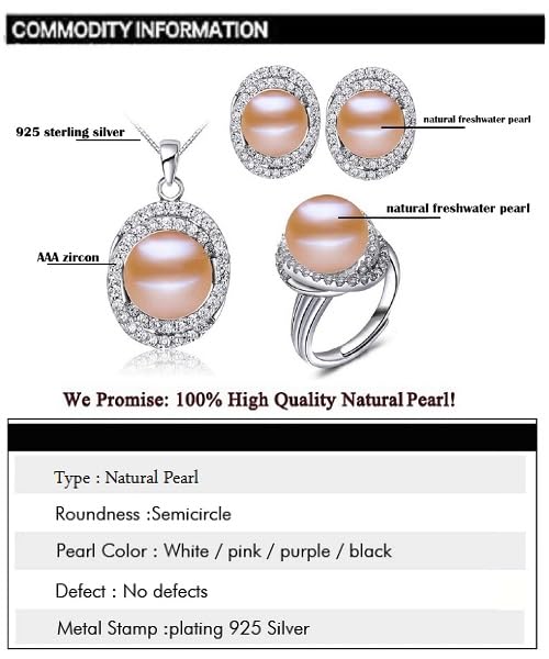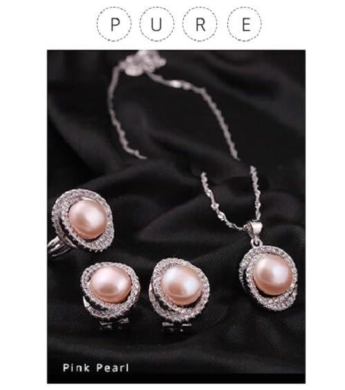Generic - طقم مجوهرات فاخرة للنساء من من اللؤلؤ الطبيعي النقي معدل نقاء AAAA والفضة الاسترليني عيار 925 مطعم بالكريستال بتصميم أنيق