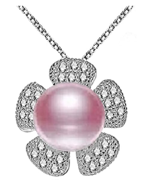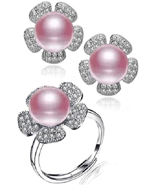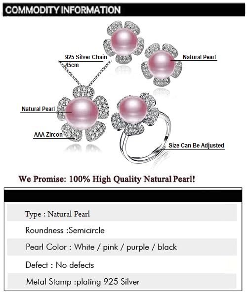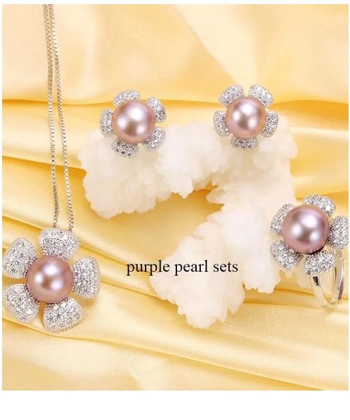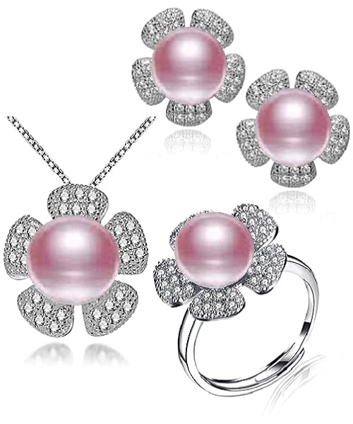 Generic - طقم مجوهرات فاخرة للنساء من من اللؤلؤ الطبيعي النقي معدل نقاء AAAA والفضة الاسترليني عيار 925 مطعم بالكريستال بتصميم وردة أنيق