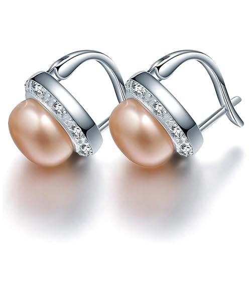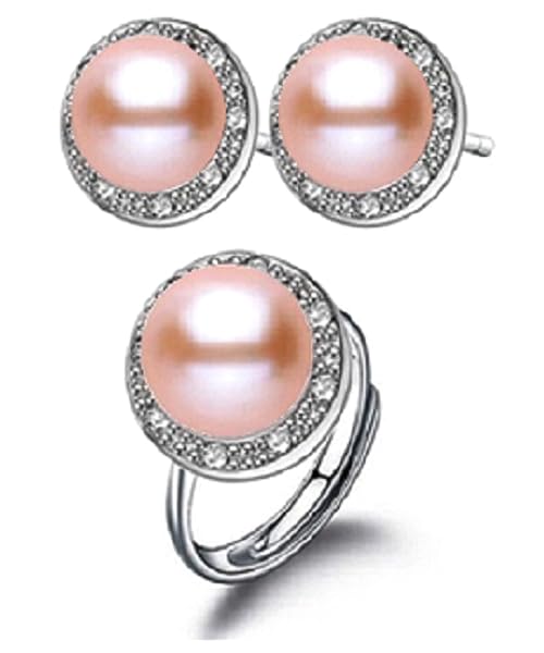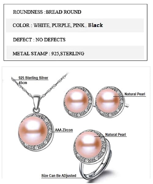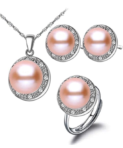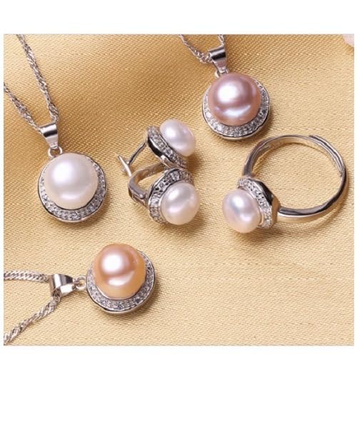 Generic - طقم مجوهرات فاخرة للنساء من من اللؤلؤ الطبيعي النقي معدل نقاء AAAA والفضة الاسترليني عيار 925 مطعم بالكريستال دائري فاخر