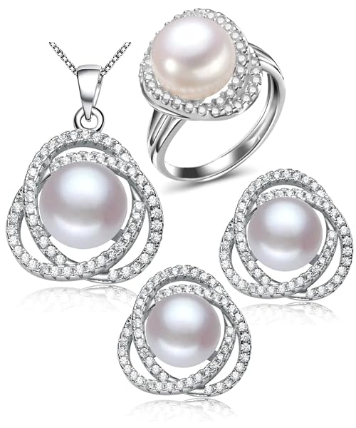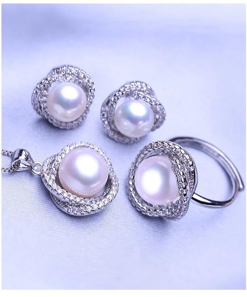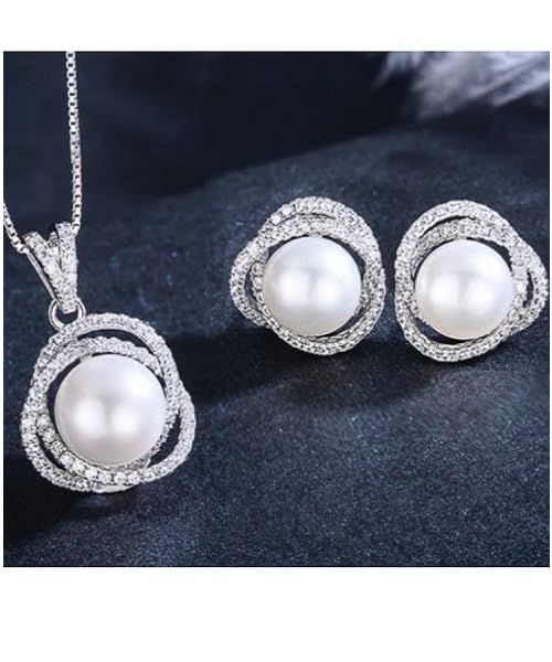 Generic - طقم مجوهرات فاخرة للنساء من اللؤلؤ الطبيعي النقي معدل نقاء AAAA والفضة الاسترليني عيار 925 مطعم بالكريستال فاخر