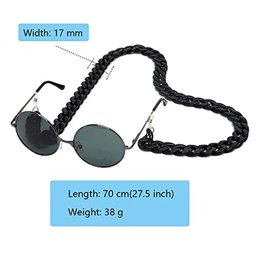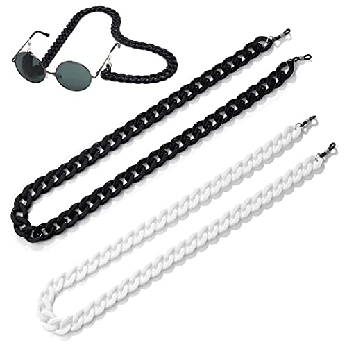 Aabellay - سلسلتين من الاكريليك بتصميم الحلقات المتداخلة من ايبلاي للنظارة الشمس ونظارة القراءة، سلسلة طويلة وعصرية، لون ابيض واسود