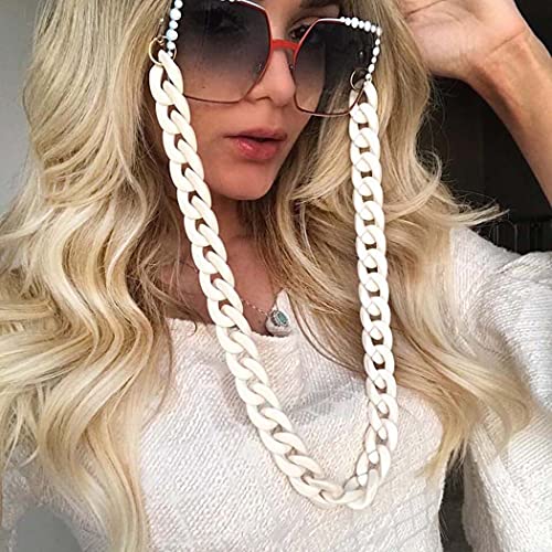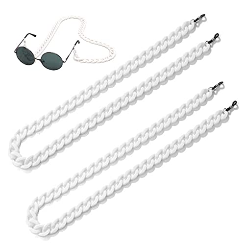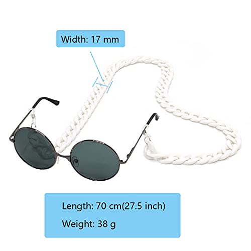 Aabellay - Aabellay 2 قطعة سلسلة النظارات مكبرة حزام حامل حبال زجاجية للقراءة الحبل الاكريليك تويست ربط قلادة سلسلة معدنية طويلة قلادة الإكسسوارات - أبيض