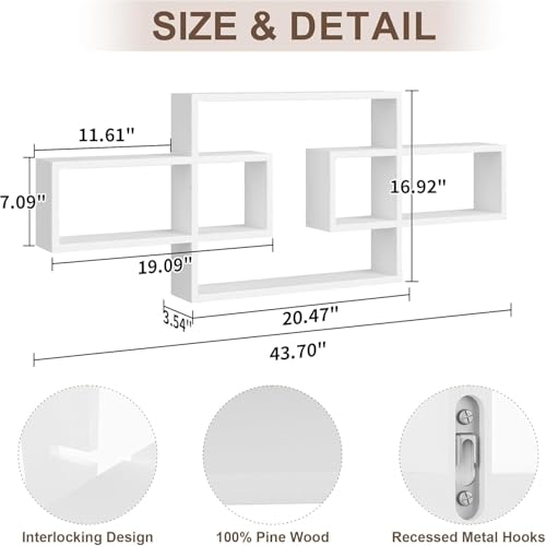 - ديكور أنيق - التصميم المثير للاهتمام لهذه الأرفف المكعبة/المستطيلة يجعلها قطعة ديكور عصرية. ستكمل اللمسة النهائية الخشبية البيضاء والشكل المستطيل الأنيق أي نمط ديكور منزلي وتعطي المساحة مظهرًا أنيقًا.