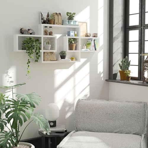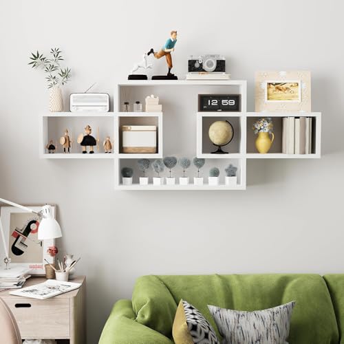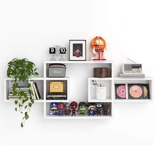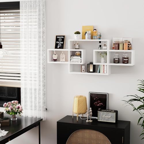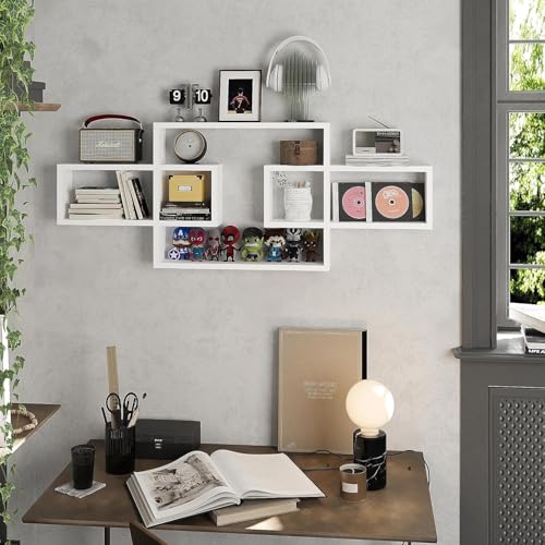 AALIYA MART - رفوف حائط خشبية لغرفة المعيشة وغرفة النوم، خزانة كتب مستطيلة مثبتة على الحائط، رفوف حائط متقاطعة للتخزين، أرفف عرض زخرفية حديثة لتزيين الجدران من اليا مارت (أبيض)