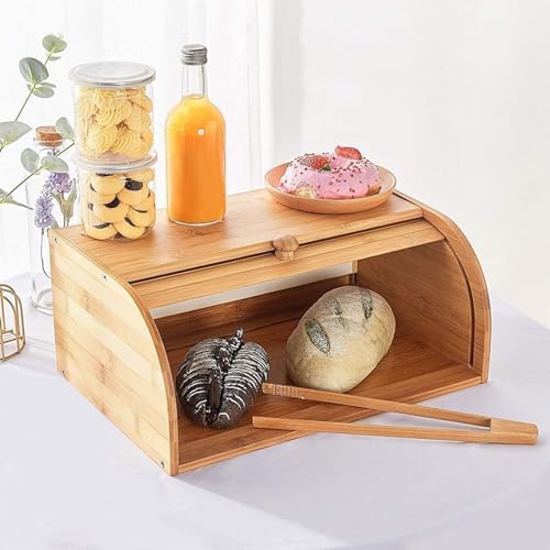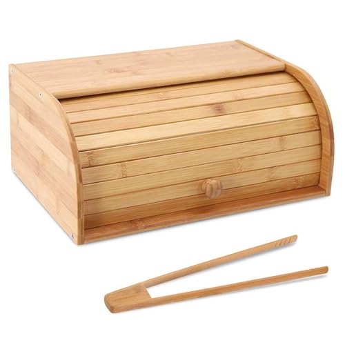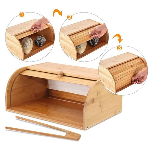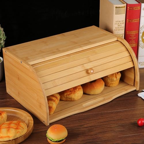Aannoel - صندوق خبز مع مشبك خبز، صندوق خبز من الخيزران لسطح طاولة المطبخ، حافظة خبز بسعة كبيرة جدًا، لتخزين الطعام في بيت المزرعة، للخبز والمافن