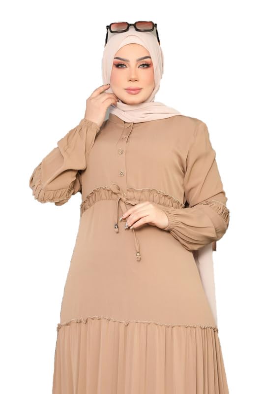 GAMAL SONS FOR ABAYA - عباية كريب بحزام بدون طرحه الخامة كريشة المقاس من XL إلي XXXXL يلبس من 60 إلي 110 كيلو للنساء , GS-1020Parent GAMAL SONS FOR ABAYA