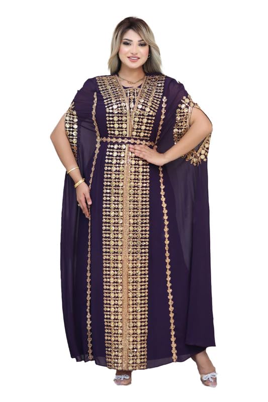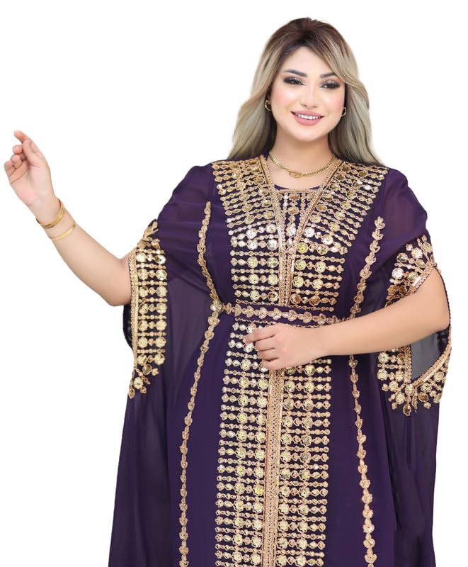 ELASLY Store - عباية استقبال , الخامة شيفون , تتميز بتطريز ذهبي أنيق ، مكون من 3 قطع ( عباية , تلبيسه , حزام ) , موديل 2061