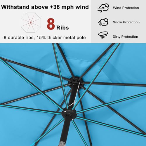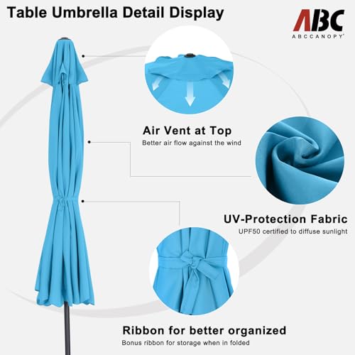 ABCCANOPY - ABCCANOPY 7.5ft Scalloped Patio Umbrella, Outdoor Table Umbrella with Tilt and Crank, Fiberglass Ribs Deck Umbrella for Patio, Pool, Garden, Picnic (Turquoise Blue)