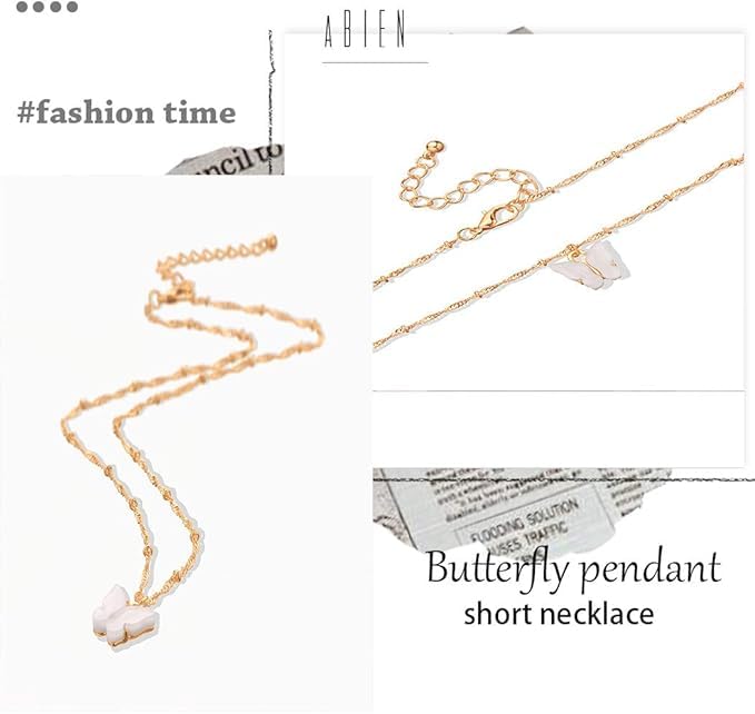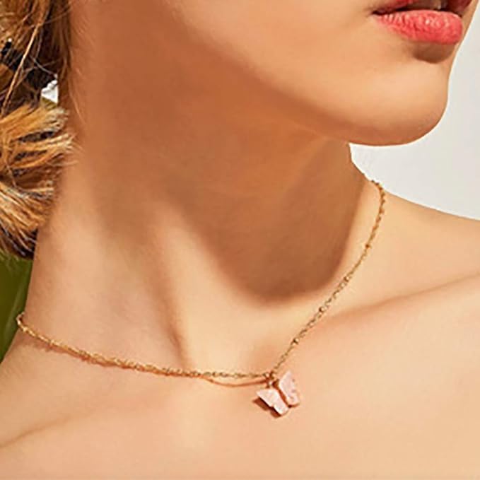 Generic - عقد سلسلة بنمط بوهيمي بدلاية بشكل فراشة من ابين ذهبية قصيرة للشاطئ مجوهرات النساء والفتيات