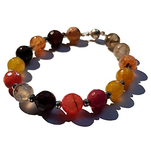 abeer accessories - اسورة من العقيق الملون و الكريستال بقفل مغناطيسي فضي، للنساء
