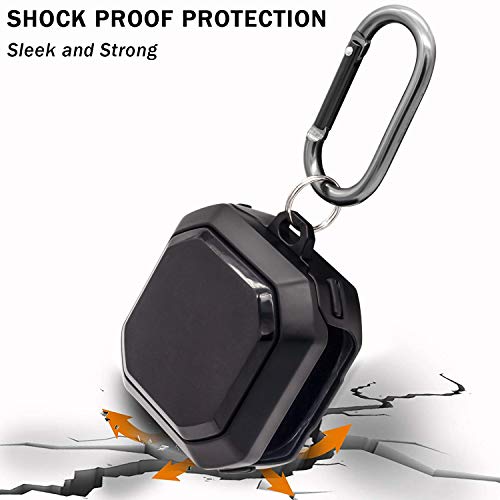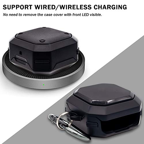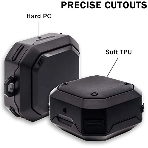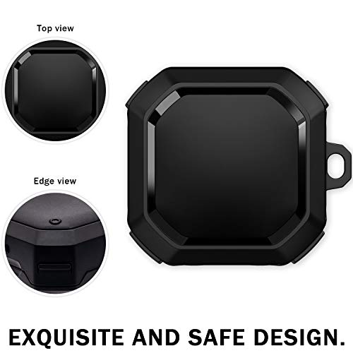 Abeike - جراب علبة سماعة من البولي كربونات الصلب، بتصميم متوافق مع الشحن السلكي وميدالية مفاتيح لسماعات سامسونج جالاكسي بادز برو من ابيكي (اسود)