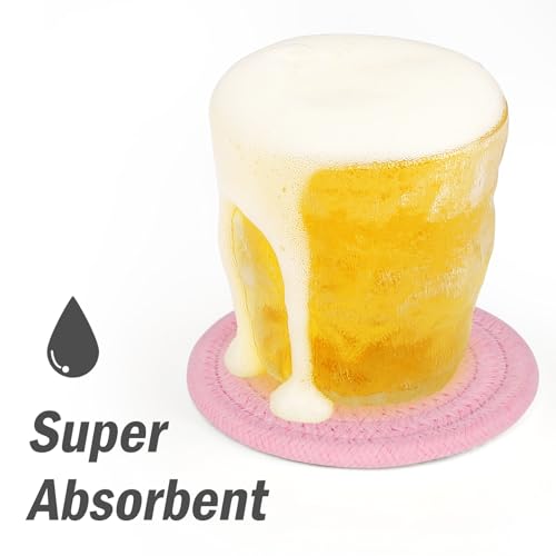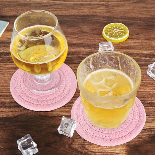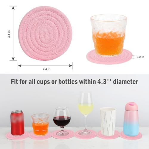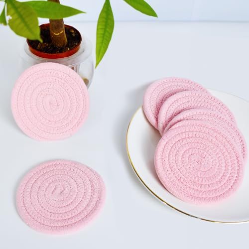 ABenkle - طقم قواعد الأكواب للمشروبات منسوجة دائرية أنيقة مصنوعة يدويًا لطاولة القهوة فائقة الامتصاص لحماية سطح الطاولة مناسبة للانتقال ولديكور المنزل جديد، 10.92 سم، بينك ساطع