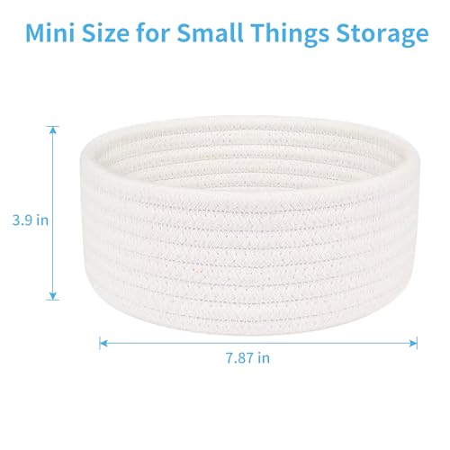 - سلة منسوجة صغيرة من الحبال القطنية، صديقة للبشرة، آمنة للحيوانات الأليفة، سلة للأشياء الصغيرة لغرف النوم وغرف اللعب. استخدم السلال المستديرة الصغيرة في دور الحضانة ومرحلة ما قبل المدرسة وفصول رياض الأطفال والمدارس؛ سلال من الحبال لألعاب العد