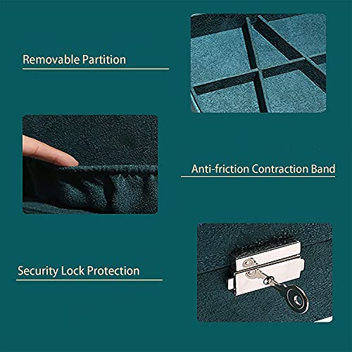 Abhsant - علبة مجوهرات قابلة للقفل ب3 طبقات محمولة للسفر مصنوعة من المخمل للنساء لون اخضر من ابهسانت