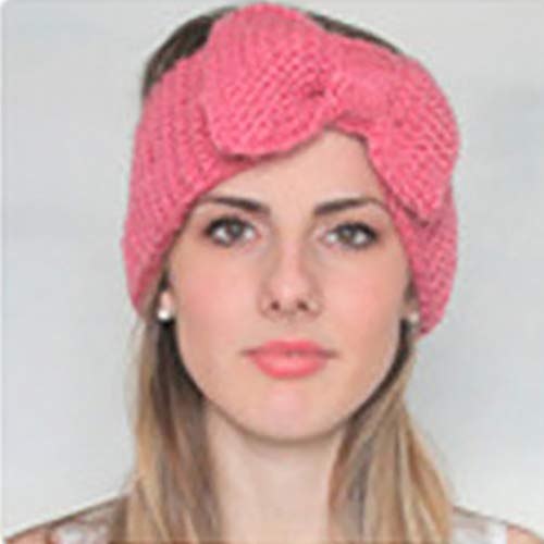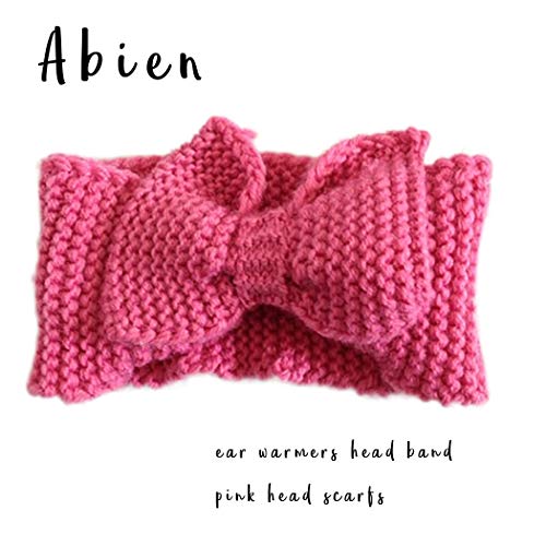Abien - ربطة رأس شتوية دافئة من Abien Bow من الكروشيه لتدفئة الأذن رباط شعر منسوج ناعم قابل للتمدد للنساء والفتيات (وردي)