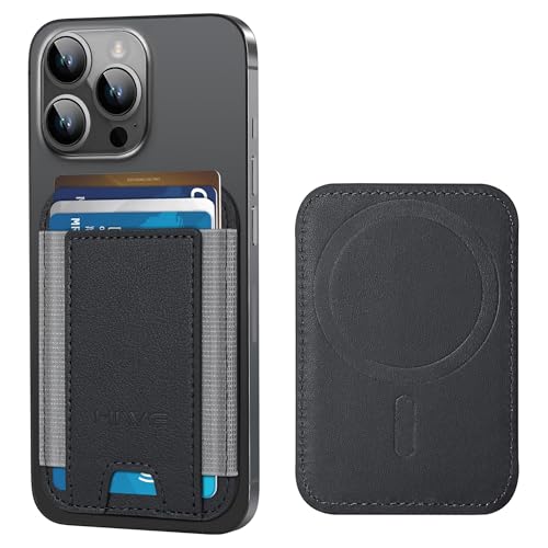 ABIN - اي بين محفظة ماج سيف، أقوى حامل بطاقات مغناطيسي لسلسلة ايفون 15/14/13/12، محفظة جلدية، تناسب 6 بطاقات، رفيع، حجب تقنية تحديد الهوية بموجات الراديو، اسود، تصميم بسيط