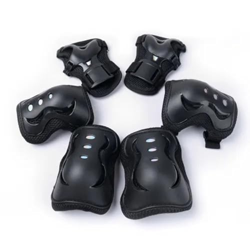 MOHAMED ABO ELGOUKH - مجموعة معدات واقية للأطفال مكونة من 6 قطع من ابو الجوخ - وسادات للركبة والكوع وواقيات المعصم - للتزلج على الجليد وركوب الدراجات - قابلة للتعديل - بولي بروبيلين + فوم - أسود